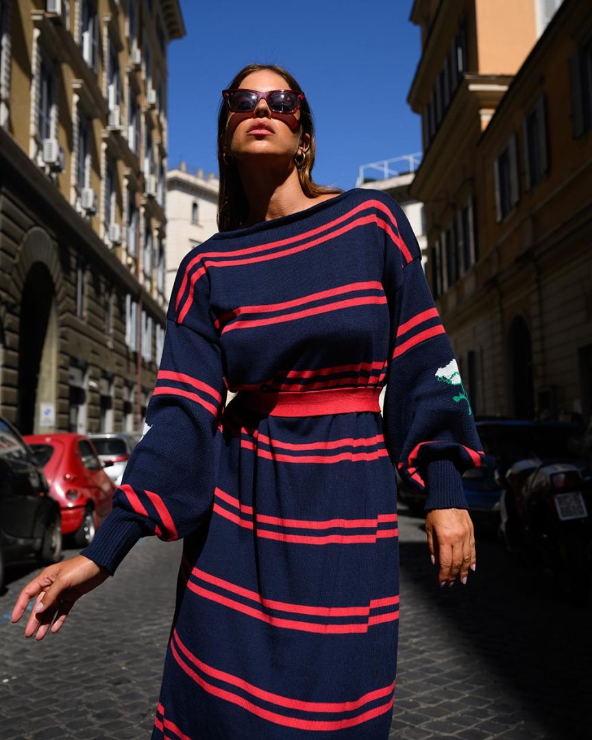 KNITTED DRESS 8O's RED & BLUE BLACK