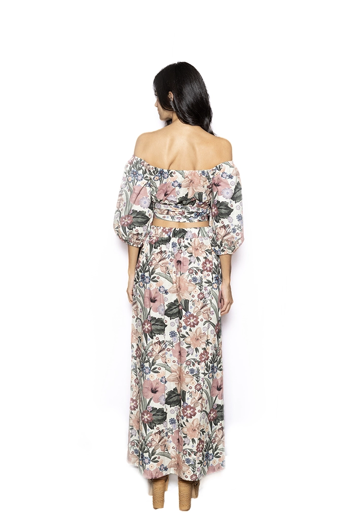 The Delia Skirt is a flowy maxi skirt, it's adorned with lively floral patterns, making it a standout piece for any wardrobe. The lightweight fabric drapes effortlessly, while the comfortable elastic waistband ensures a perfect fit. The skirt with the removal belt, and our Amara top allow you to turn these pieces into a dress.