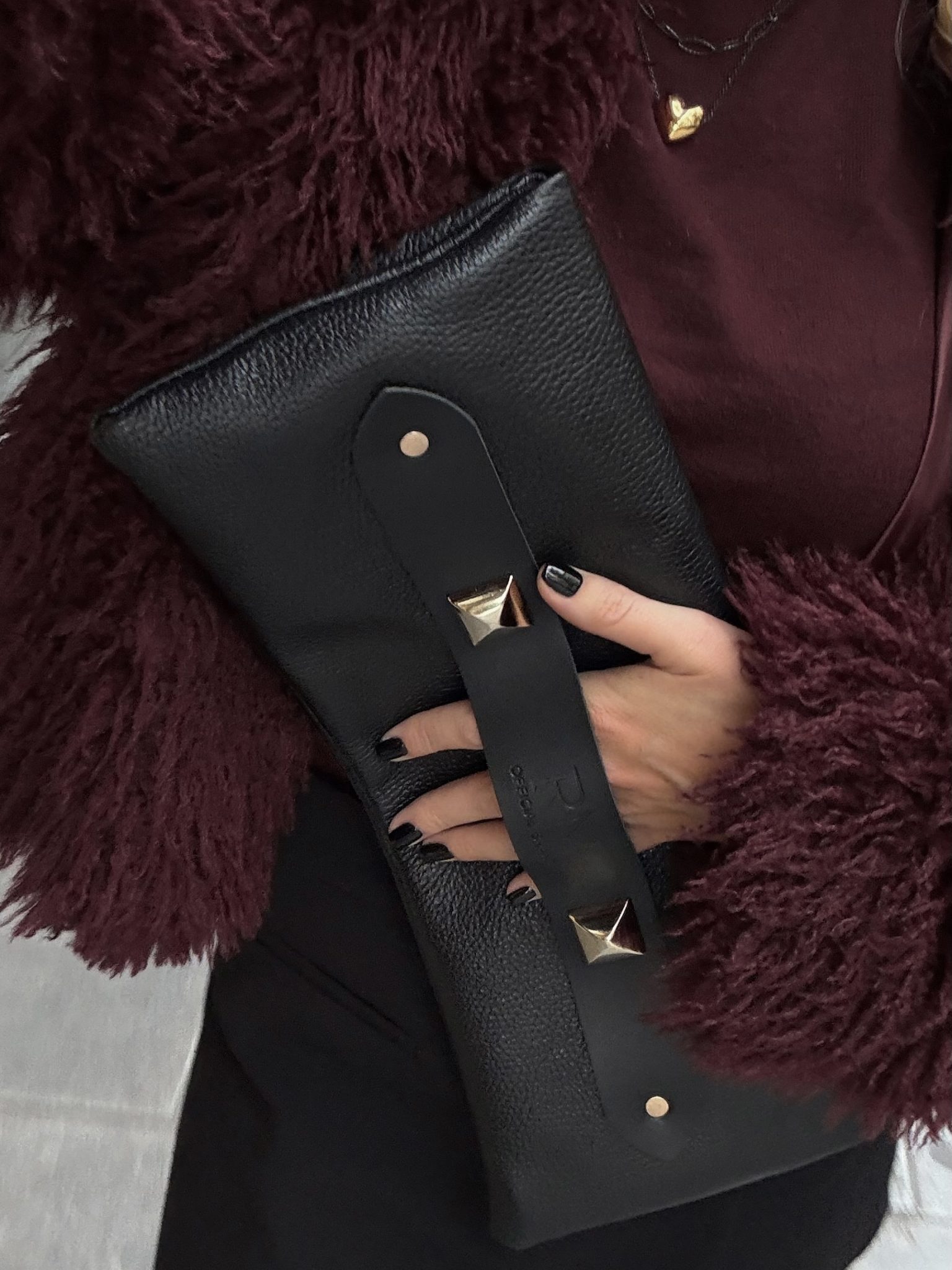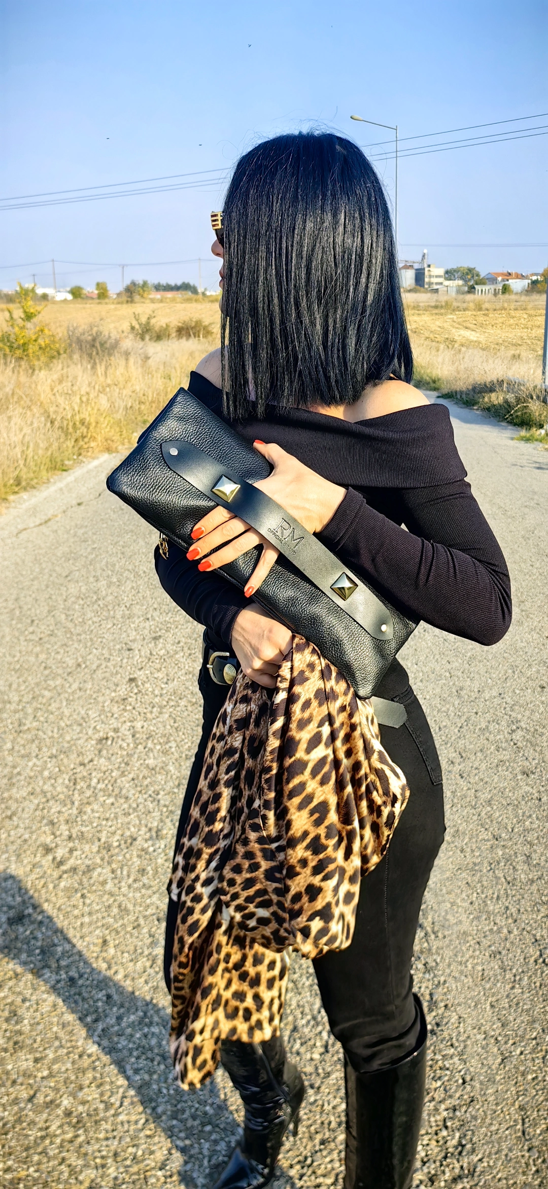 Silia! A wonderful handmade envelope bag made of genuine black leather. It is the bag that will be a trend for the coming seasons! It folds and closes with a gold magnet on the back to keep it in its most evening version! Very functional for every occasion.