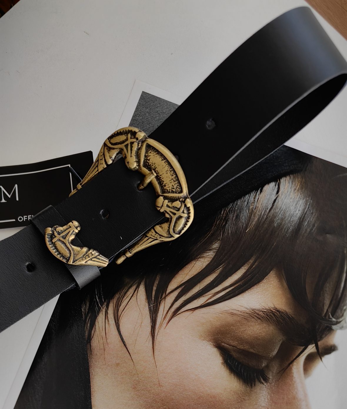 Χειροποιητη δερμάτινη ζώνη με χάλκινη αγκράφα άλογο και θυλακι αντίστοιχα αλογάκι για τις πιο εντυπωσιακες εμφανίσεις σου! Σε μαύρο δέρμα.