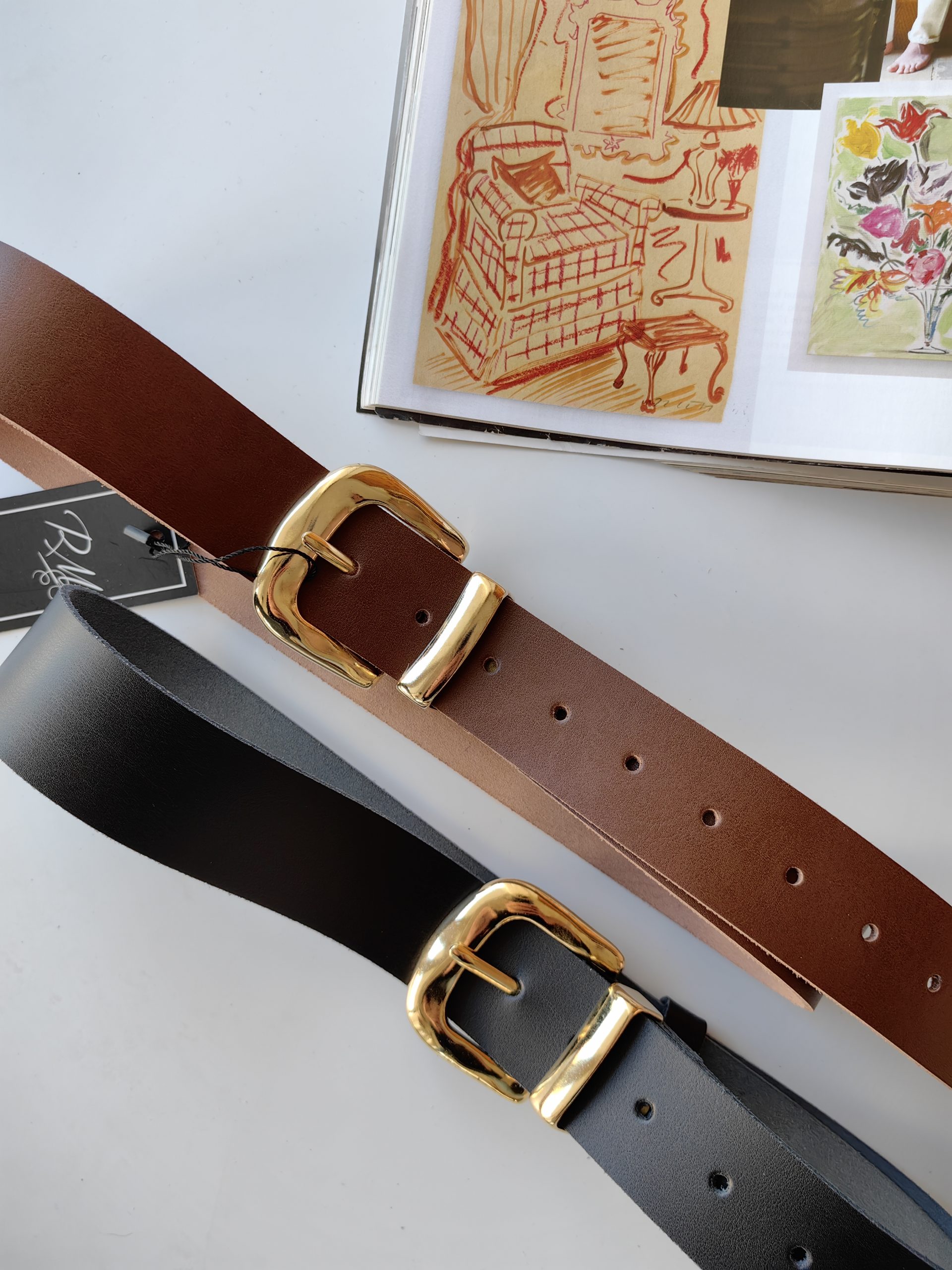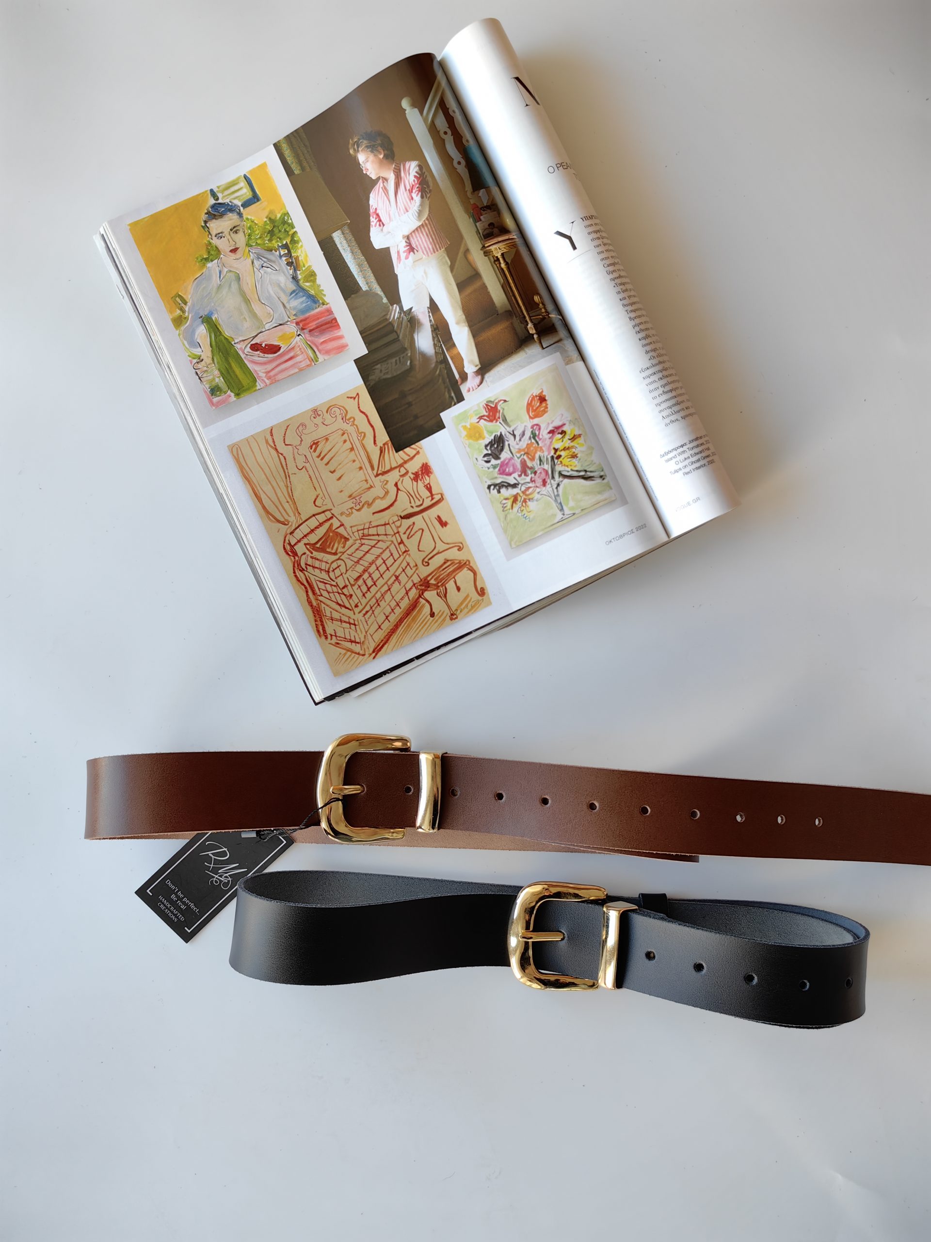 Χειροποίητη δερμάτινη ζώνη σε καφέ δέρμα με χρυσή αγκράφα και θηλιά