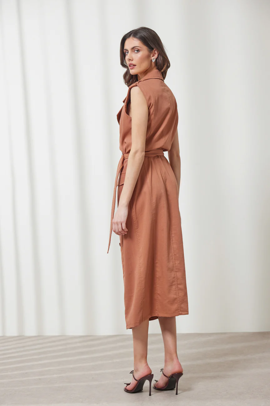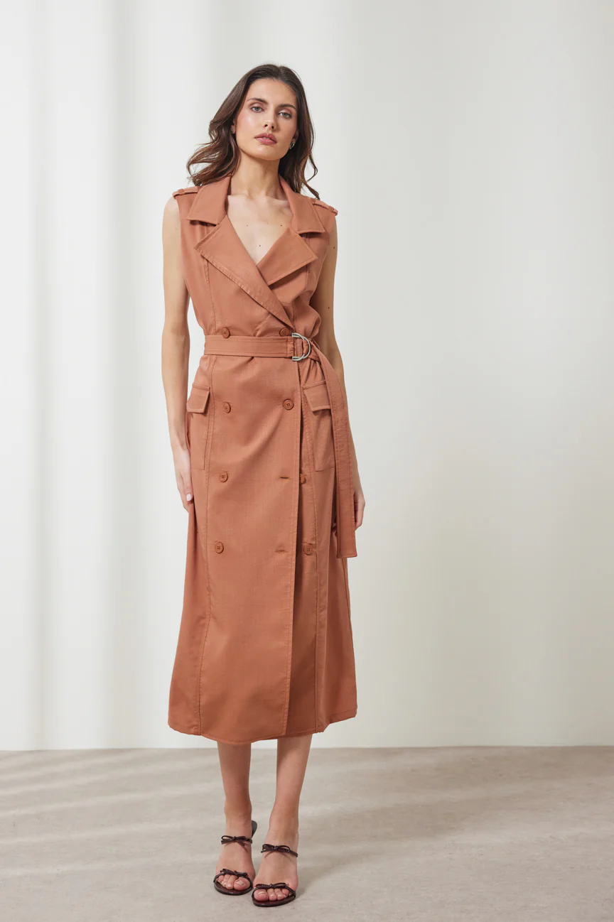 Αμάνικο φόρεμα σε στυλ καπαρντίνας.