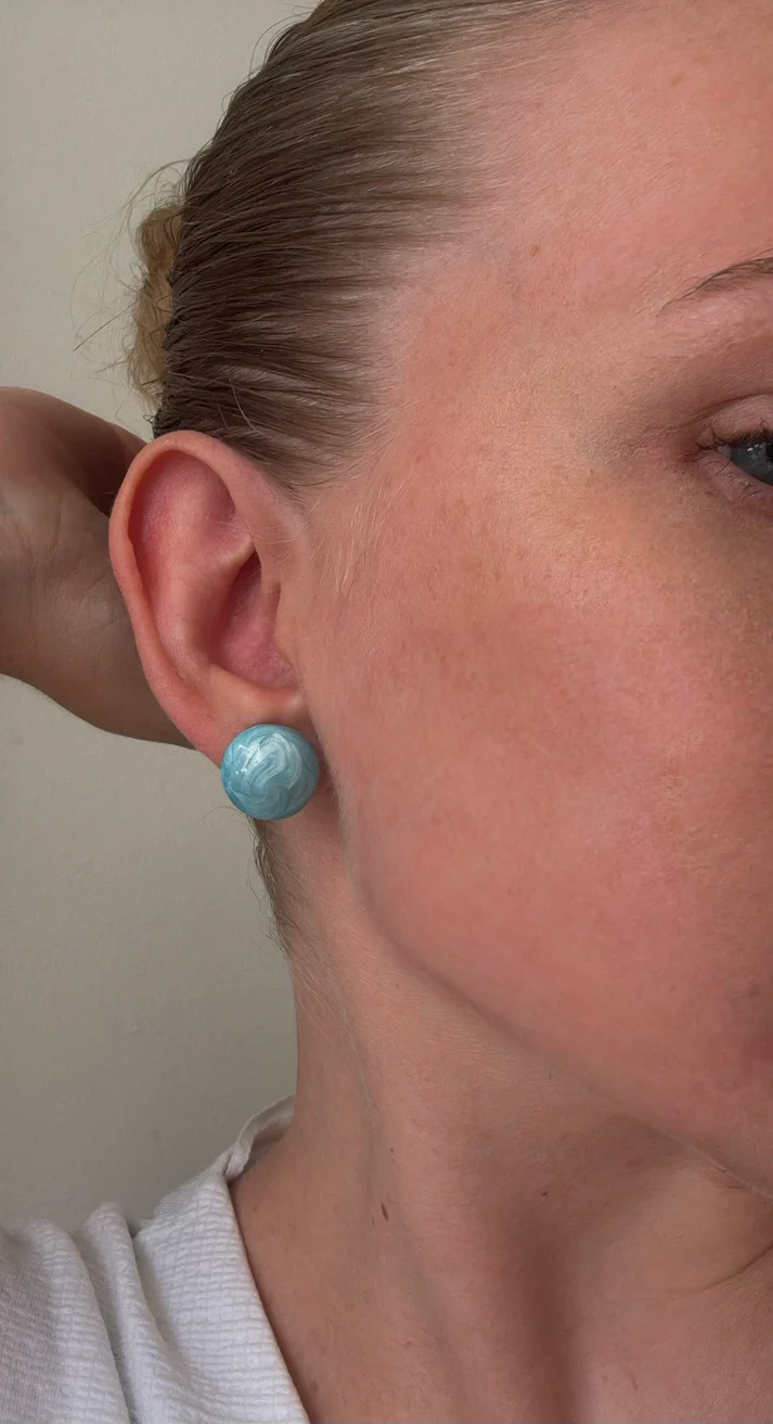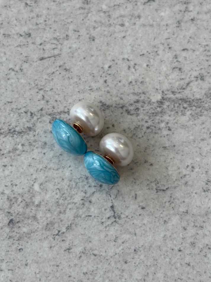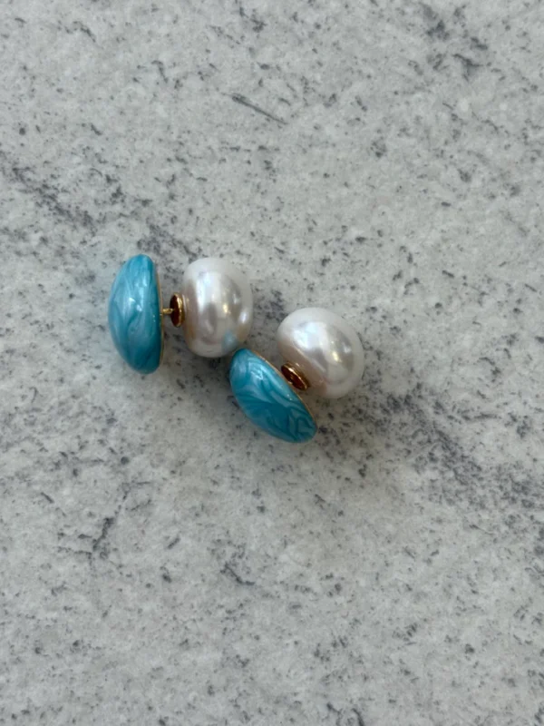 Iremya (Ηρεμία) earrings. Μπροστά, ένα φρέσκο aquamarine χρώμα που φωτίζει το πρόσωπό σου, ενώ το κούμπωμα πίσω σε σχήμα πέρλας δίνει μία ιδιαίτερη και κομψή πινελιά. Φτιαγμένα από ανοξείδωτο ατσάλι, είναι ανθεκτικά, υποαλλεργικά και ιδανικά για τα καλοκαιρινά σου look
