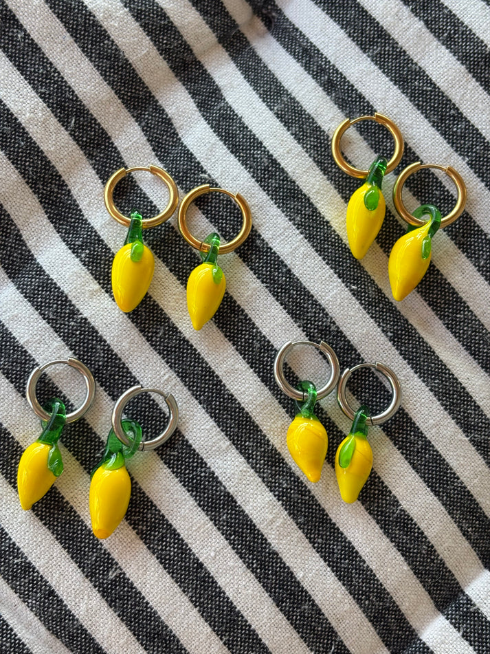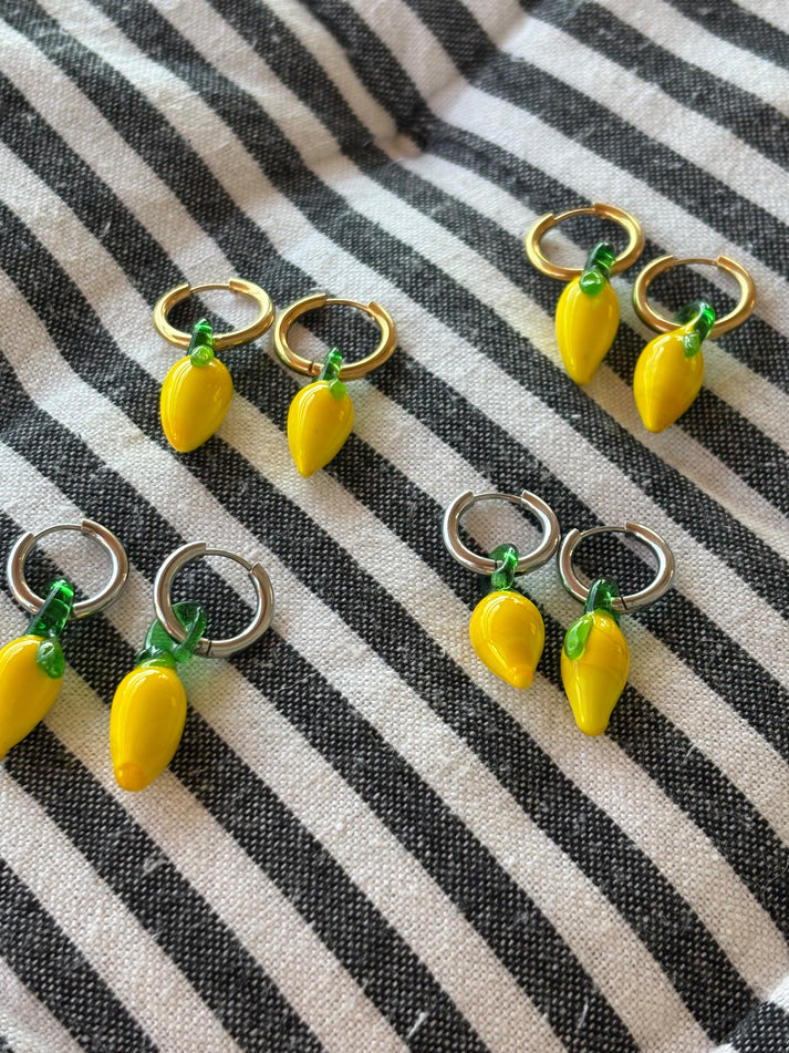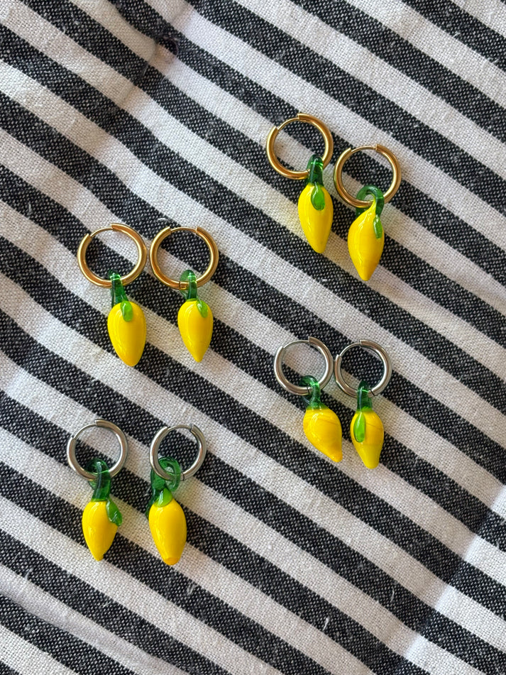 Χειροποίητα σκουλαρίκια με γυάλινες χάντρες σε σχήμα λεμονιού από αυθεντικό γυαλί Murano.