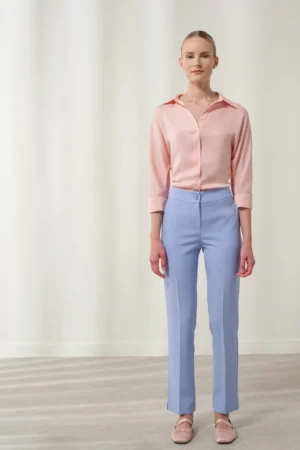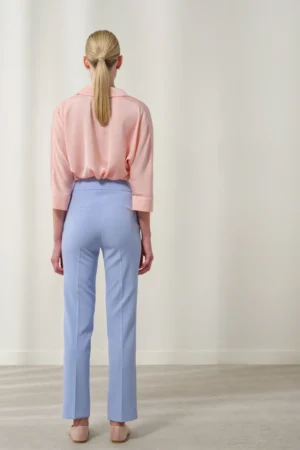 Velvet trousers with a structured front waistband and an elasticated back for a comfortable fit.