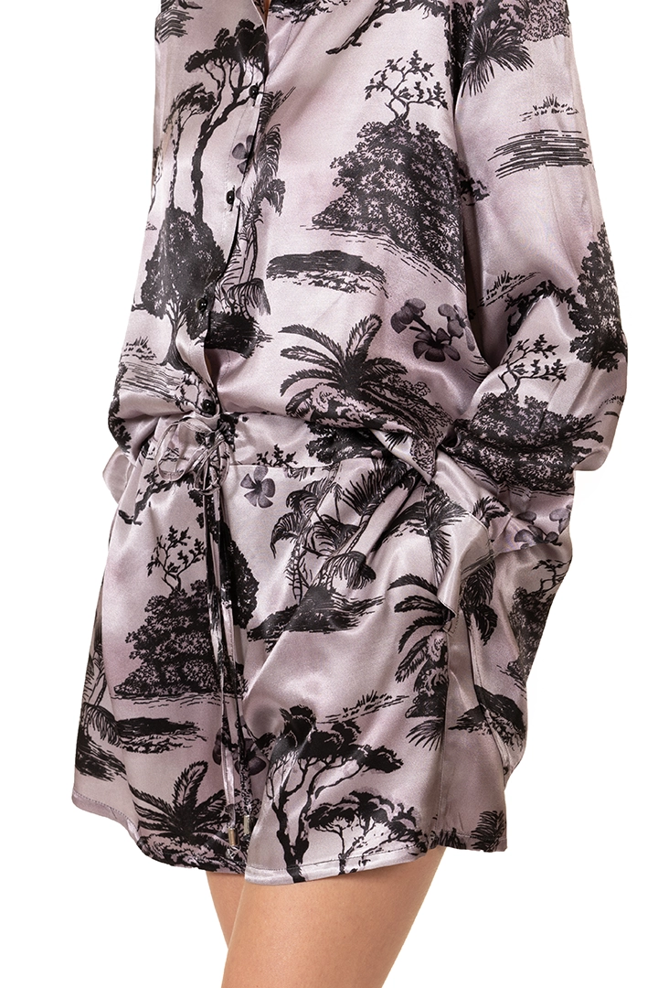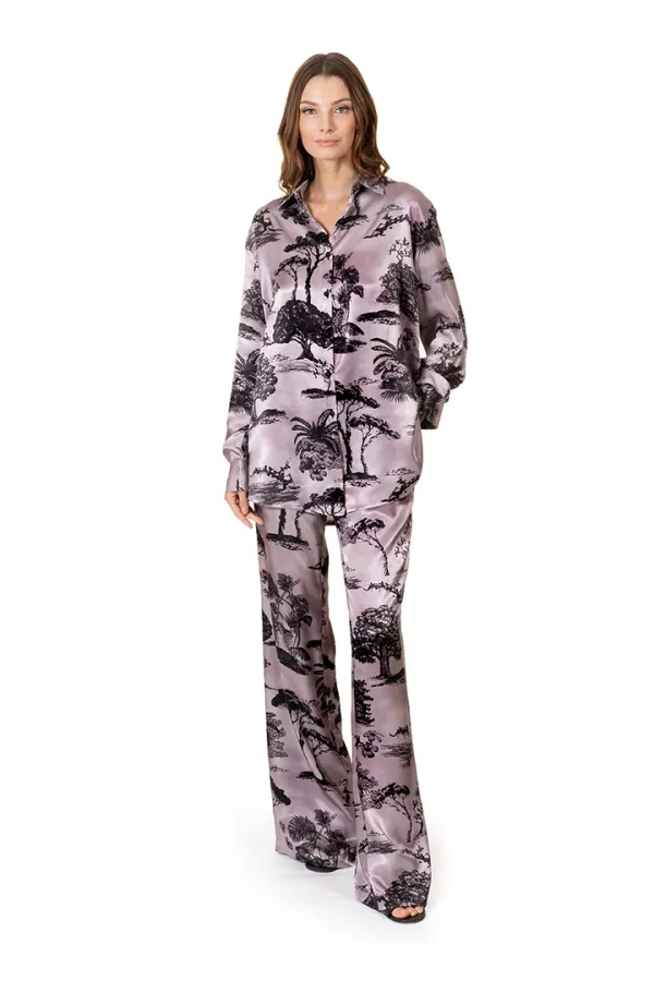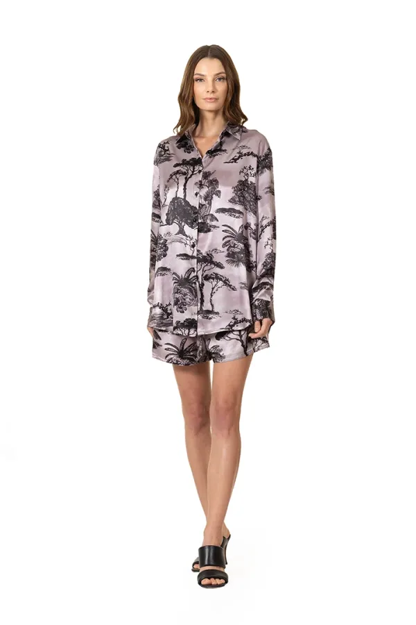 The Ophelia shirt offers a relaxed yet refined feeling showcasing a beautiful landscape of botanical wonders. Crafted in a combination of soft lilac and dark grey tones it features a modern cut, a sharp collar, and a buttoned closure on the front. The shirt can be paired with our matching Cora shorts to complete the look.