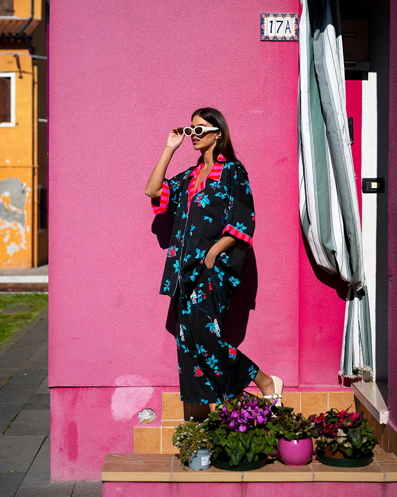 Philippa Trousers White Parrots & Blossom (Black)