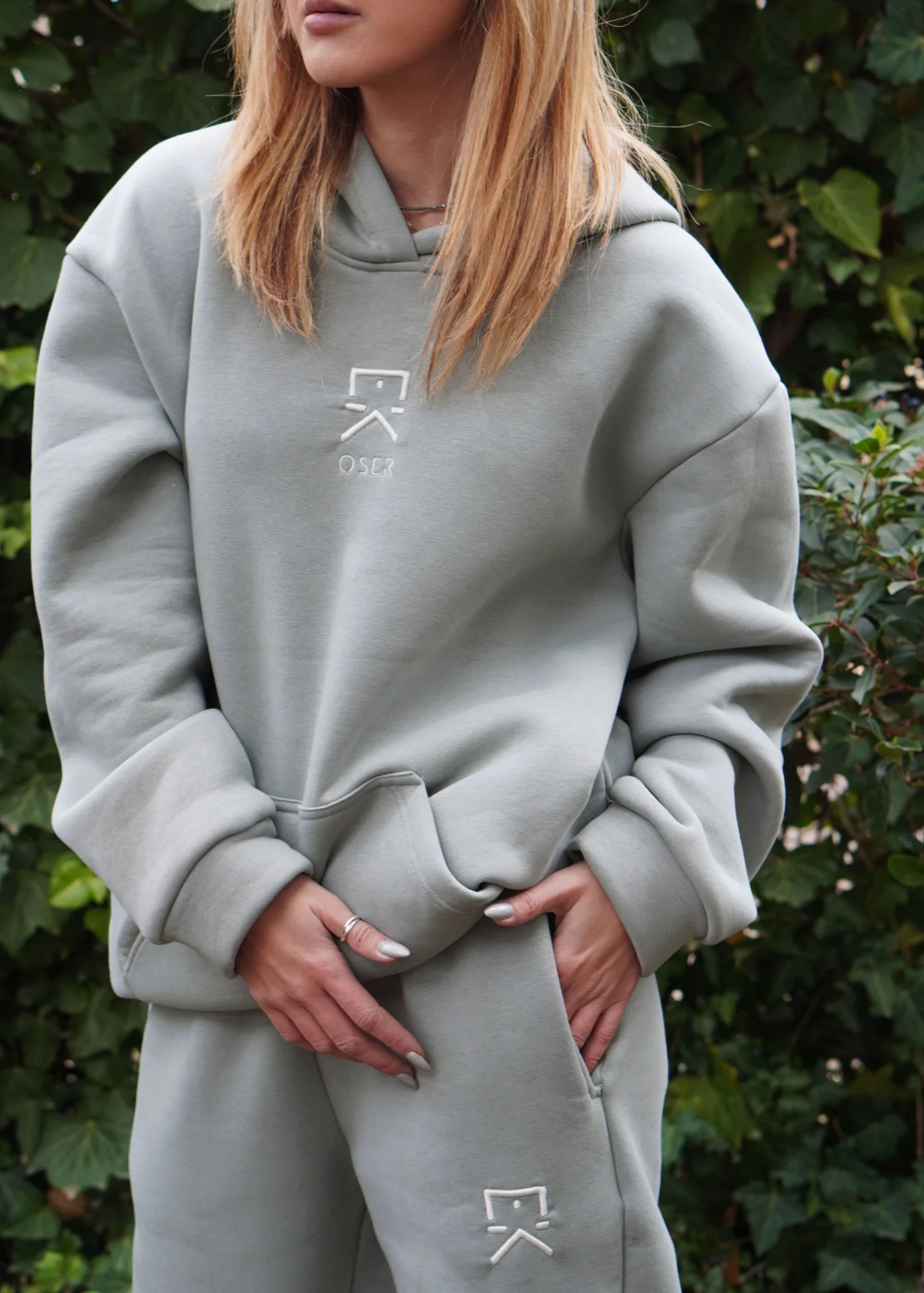 •Φούτερ oser με κουκούλα,με κεντημένο logo σε oversize γραμμή! Διαθέτει μπάσκα στη κοιλιά, τσέπες καγκουρό και μπάσκα στα μανίκια!